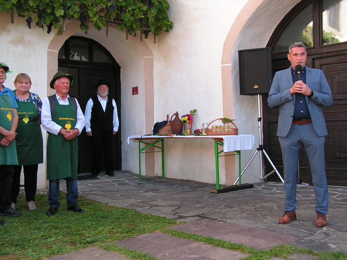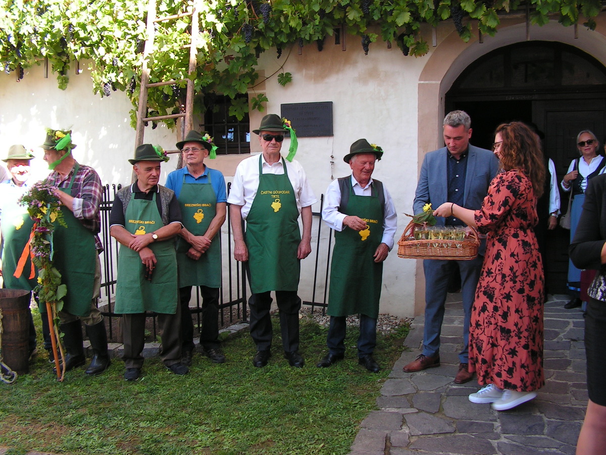 Letošnja trgatev potomke najstarejše trte na svetu v Breznu, ki je bila 21. 9. 2025, je bila še posebej slovesna, saj je bila jubilejna – že petnajsta. Številne zbrane je pozdravila voditeljica programa, ki je pripravila tudi njegovo vsebino, Slavica Pečovnik Urh. Med njimi je pozdravila župana Občine Podvelka in gospodarja trte Mirana Pušnika, univ.dipl.inž., častnega gospodarja trte in častnega občana Antona Kovšeta, inž., častno občanko Marijo Poglajen, častnega občana mag. Jožeta Marhla, skrbnika trte Antona Zaletelja, domačega župnika Jožeta Motalna in duhovnega pomočnika Župnije Brezno prof. dr. Vinka Potočnika.