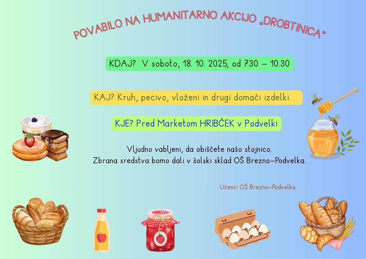 Učenci Osnovne šole Brezno-Podvelka vljudno vabi na humanitarno akcijo "Drobtinica".