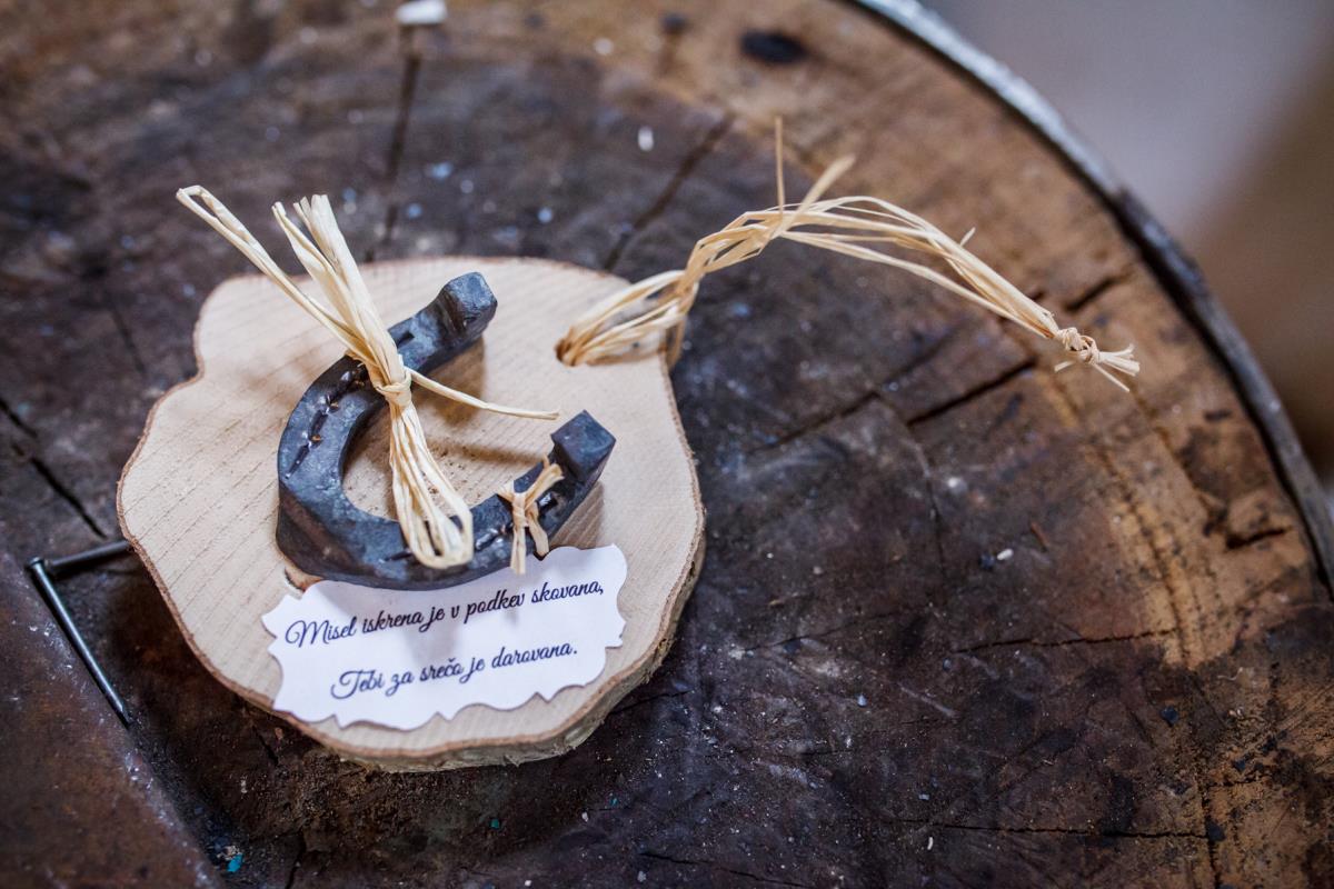· - Darilo: izdelan odtis/simbol na brezovi deščici in podkvica
